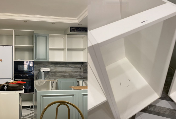 "По договору в первую очередь они должны были привезти кухонный гарнитур, но начали со шкафов. Сначала привезли их каркас и установили. Причем детали привозили частями: один раз - половину шкафа, еще через неделю или 10 дней - другую часть. А о качестве я вообще молчу, мебель в ужасном состоянии: детали привозили с трещинами, резали их неправильно. Я уже была согласно и на такое, лишь бы собрали мне мебель. Но сборщики и этого не сделали.
