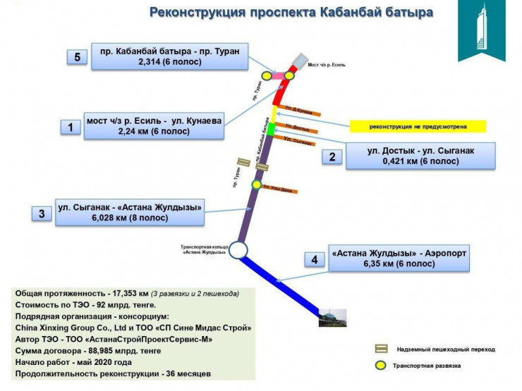 Реконструкция проспекта Кабанбай батыра в Нур-Султане. Что известно на данный момент