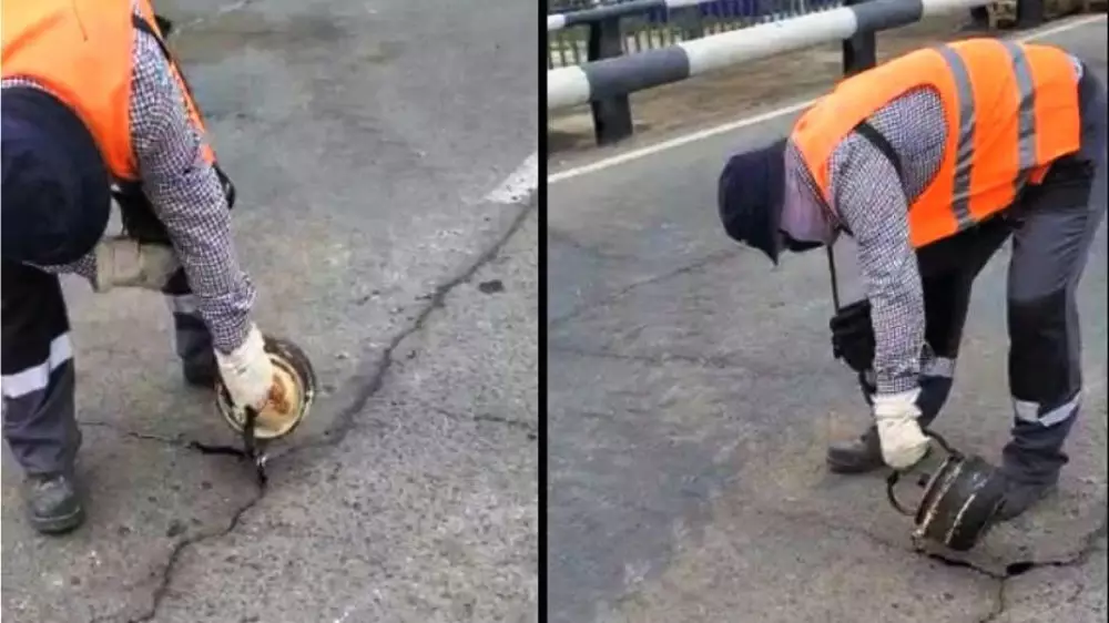 Забавное видео ремонта дорожного полотна на мосту в Атырау распространяют в соцсетях, сообщает Tengrinews.kz со ссылкой на "Ак Жайык".