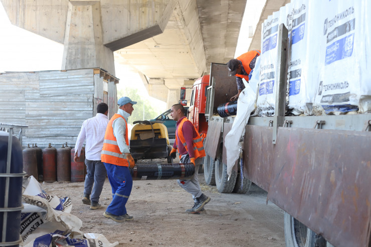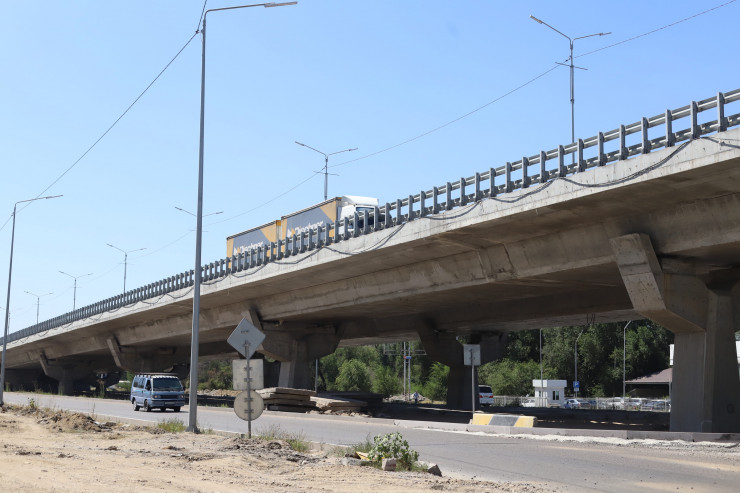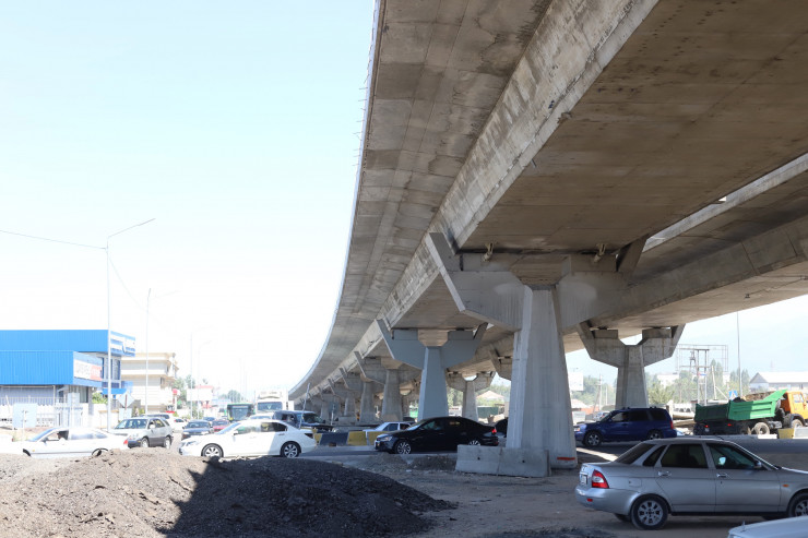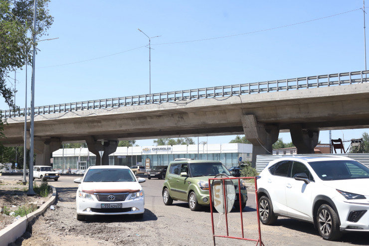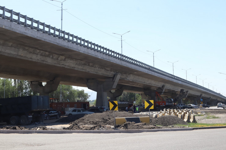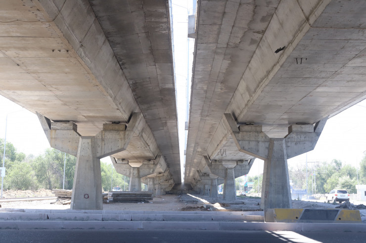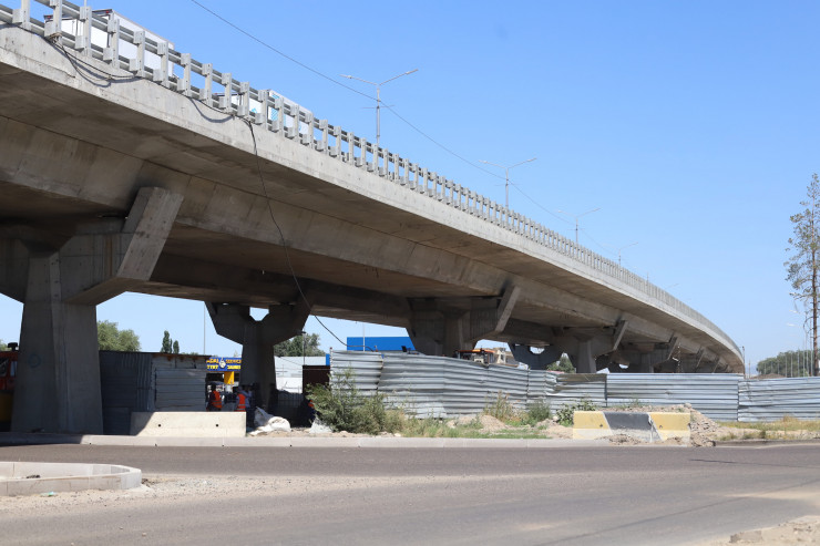 Там выполнено более 50 процентов от всего объема работ. По эстакаде остались бетонные работы, то есть нужно забетонировать эстакаду, асфальтные работы и пешеходный переход. Напротив Райымбека также предусмотрено расширение еще одной полосы. Вот эти два объекта остались.