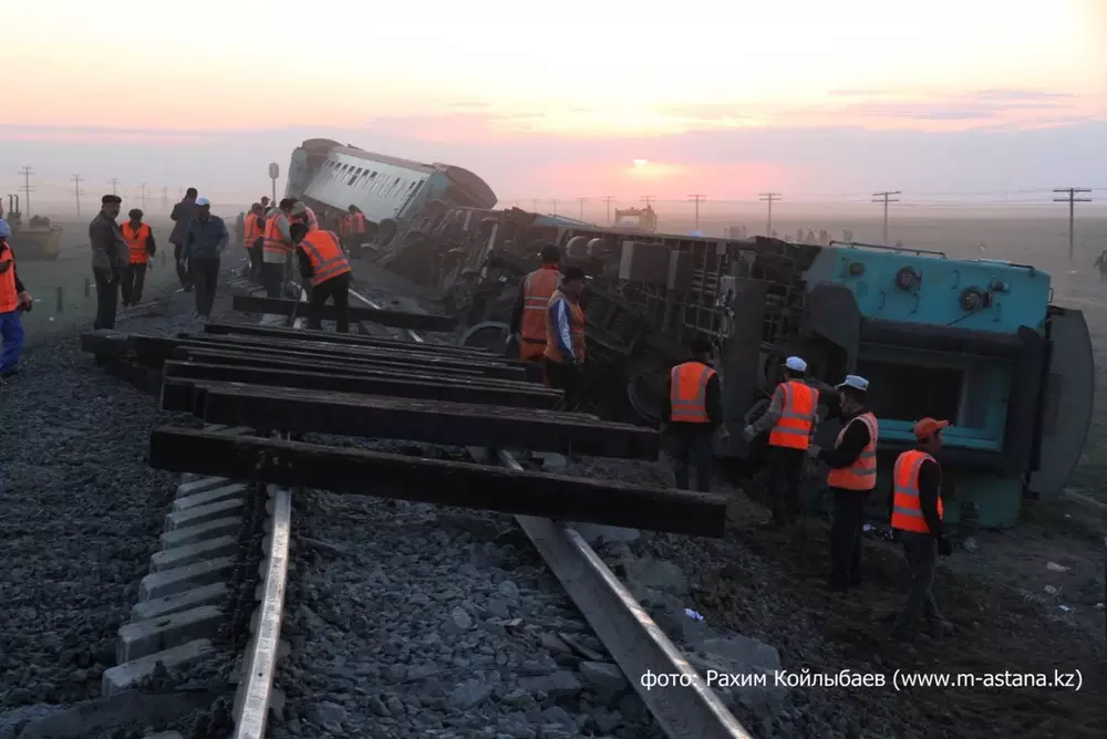 "На сегодня проводится проверка, устанавливаются причины. Предварительно установлено, что ремонтные работы на данном пути проводились с нарушением регламента. Помимо этого, также не отрицаются и другие версии: проверяются сами вагоны, тележки, колесные пары, проводится соответствующая экспертиза", - сообщил он в ходе брифинга в Службе центральных коммуникаций при Президенте РК.
