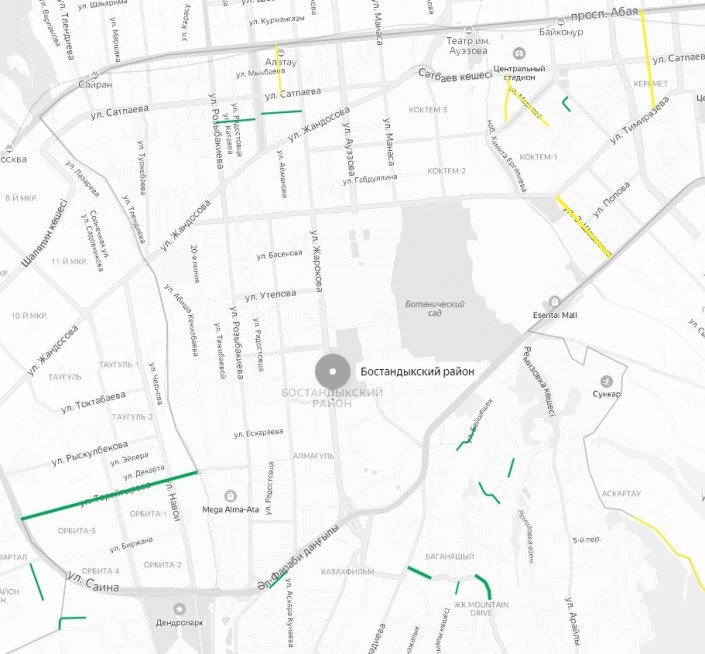 А вот в Ауэзовском районе ремонтировали 13 улиц вместо запланированных ранее 16. Ремонт так и не дошел до транспортных развязок на пересечении улиц Саина и Жандосова, улицы Саина и проспекта Абая, улиц Саина и Шаляпина. Кроме того, ремонт все еще идет на внутриквартальном проезде от улицы Шалова до школы № 127 и на улице Тургенская от улицы Яссауи до дома № 78.
