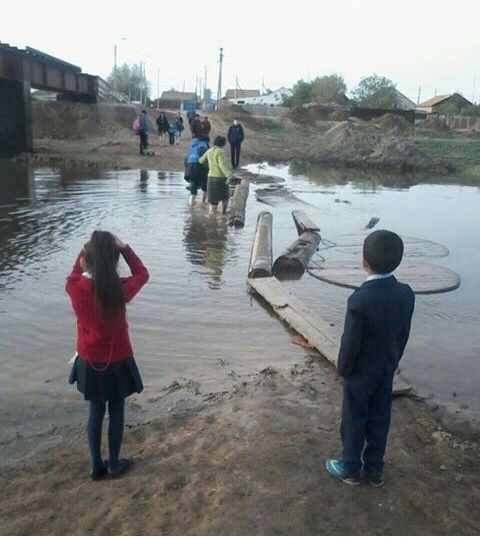 В соцсетях обсуждаются фото, на которых люди вброд "форсируют" приток реки Шароновка в черте села Ганюшкино Курмангазинского района, сообщает "Ак жайык".
