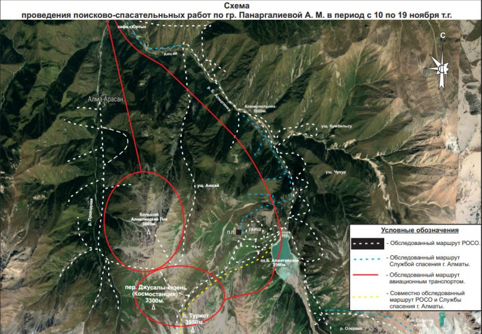 Ранее родственники пропавшей в горах Асель Панаргалиевой написали письмо в КЧС с просьбой привлечь для поисков девушки вертолет, но поиски не дали результатов. 12 ноября по просьбе матери девушки поиски были остановлены, так как родные из-за запеленгованного IMEI-кода телефона посчитали, что она якобы уже спустилась с гор.