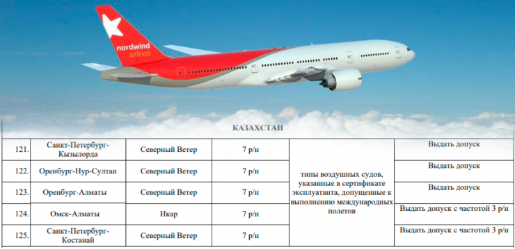 Ранее Росавиация выдала авиакомпаниям "Северный ветер" и "Икар" допуск на рейсы между крупными городами Казахстана и России.