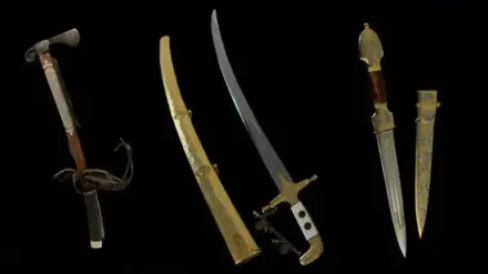 - Саблю с орнаментом из жёлтого металла – за 837 тысяч тенге.