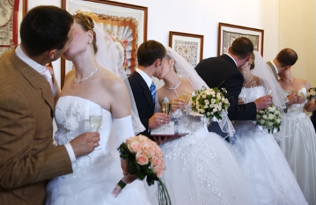 Московские ЗАГСы ожидают увеличение количества вступающих в брак в связи с датой 09.09.09, пишут "Новые известия". Браки планируют заключить в четыре раза больше пар, чем в обычные дни. На "День трех девяток" запланировано 1 тысяча 36 церемоний бракосочетания. Между тем, центральный ЗАГС Читы в среду, 9 сентября 2009 года (09.09.09), зарегистрирует 13 браков, сообщает РИА Новости со ссылкой на директора ЗАГСа Людмилу Бутину. Это почти в четыре раза меньше по сравнению с аналогичной датой прошлого года - 08.08.08. "Завтра у нас 11 торжественных и две неторжественные регистрации. Никакого ажиотажа нет. В выходные дни у нас обычно по 19-20 пар, даже во вторник - в день неторжественных регистраций - у нас по 14-15 пар, а тут всего 13", - сказала Бутина. По ее мнению, нежелание заключать брак в очередную "магическую" дату связано с тем, что она выпала на середину недели. Между тем, как сообщает РБК, московские ЗАГСы уже готовятся к следующей "красивой" дате - 10 октября 2010 года (10.10.10). По словам начальника управления ЗАГС Москвы Ирины Муравьевой, они планируют отменить выходной в этот день, чтобы зарегистрировать браки всех желающих. "Этот день выпадает на воскресенье - выходной день для ЗАГСов, однако, если желающих будет много, мы отменим выходной", - добавила она. Традиционно такие даты пользуются популярностью у молодоженов. Так, в "День трех семерок" - 7 июля 2007года в Москве было зарегистрировано 1 тысяча 678 пар, в "День тех восьмерок" - 8 августа 2008 года - 1 тысача 597 свадеб. При этом, Муравьева отметила, что "красивое" число не является залогом прочной и счастливой семейной жизни. На сегодняшний день из более тысячи союзов, заключенных 7 июля 2007 года, распалось 128, также развелись 42 пары, расписавшиеся 8 августа 2008 года.