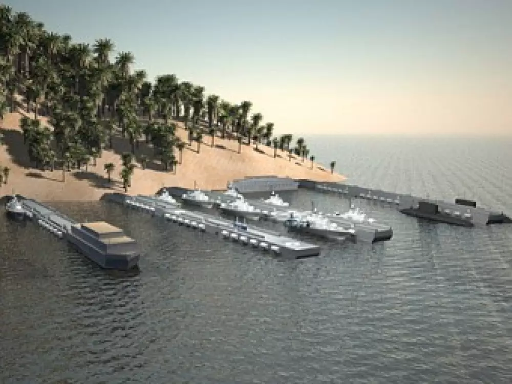 По его словам, пункт стоимостью на порядок меньше стационарного, в кратчайший срок (менее 30 суток) может быть развернут на необорудованном побережье для приема кораблей. Комплектация пункта зависит от условий предстоящего базирования и требований заказчика. Включает в себя штатные понтоны металлического и бетонного исполнения. Они могут быть насыщены всеми системами обеспечения кораблей, включая электричество и воду. В габариты понтона может быть вписан ангар для вертолета, помещения пункта управления, казарма и мастерская для ремонта кораблей. К нему прилагается также мобильный узел связи и система охраны и обороны.