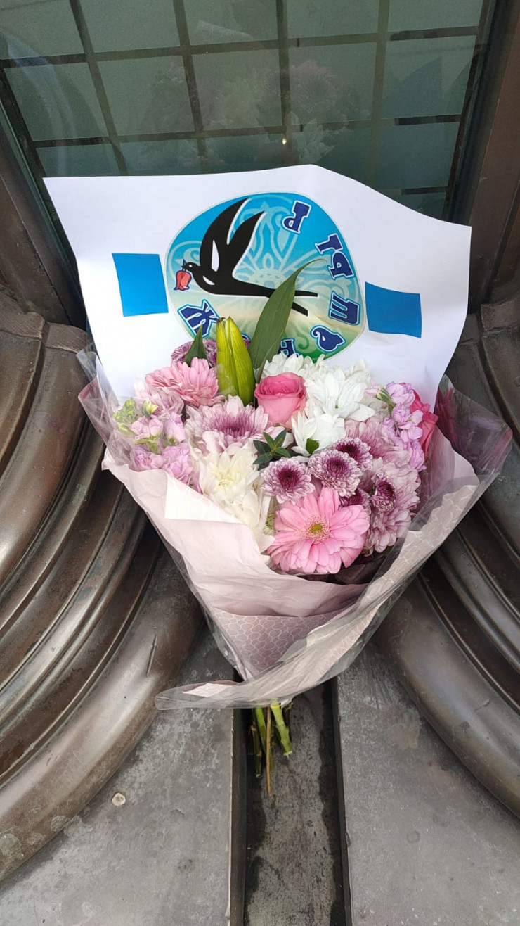 Цветы и плакат с благодарностью к Посольству Казахстана отнесла. Была первая. Согласовала свои действия с полицейским и даже с представителями посольства, теперь можно у главного входа оставлять свои благодарности за помощь российским беженцам! #нетвойне #спасибоказахстан pic.twitter.com/HwrLczmtYN