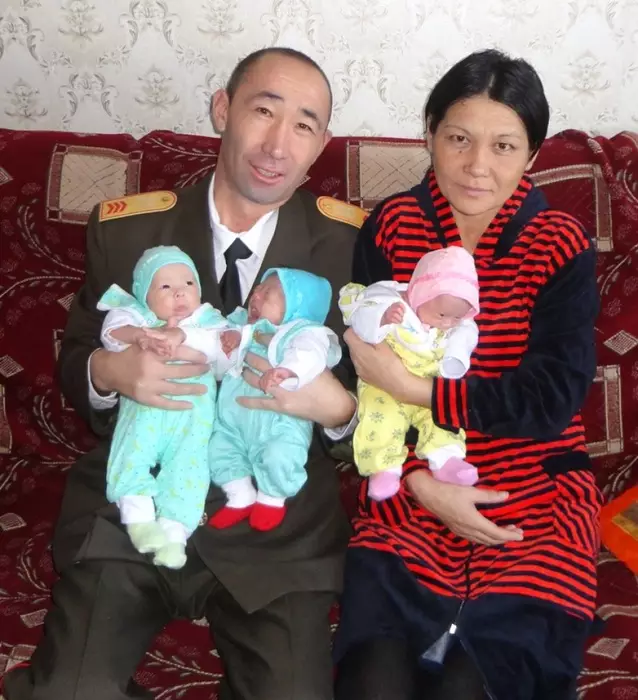 После рождения тройняшек семья казахстанского сержанта получила квартиру, передает корреспондент Tengrinews.kz, со ссылкой на пресс-службу Минобороны. Супруга сержанта Амангельды Мамырбекова родила трех девочек: Инкар, Гаухар и Каусар. С рождением тройняшек семья Мамырбековых стала многодетной. Теперь у пары 6 детей. Сейчас старшему сыну Динары и Амангельды - 12 лет, дочери - 10, третий ребенок - сын Айбар - родился в марте 2011 года. Командование Сарыозекского гарнизона выделило семье трехкомнатную квартиру. Прежде сержант занимал с тремя детьми полуторку. Они уже въехали в дом, который был сдан в эксплуатацию этим летом после капитального ремонта. Амангельды Мамырбеков проходит контрактную службу в качестве инструктора по вождению в механизированном соединении. Он строит оптимистичные планы на Новый год. "Этот Новый год мы будем встречать по-особенному, - говорит многодетный отец. - И в новом составе, и в новой квартире. В общем, все по-новому! У нас настоящий тройной праздник: и рождение девочек, и новая квартира, и встреча Нового года!"