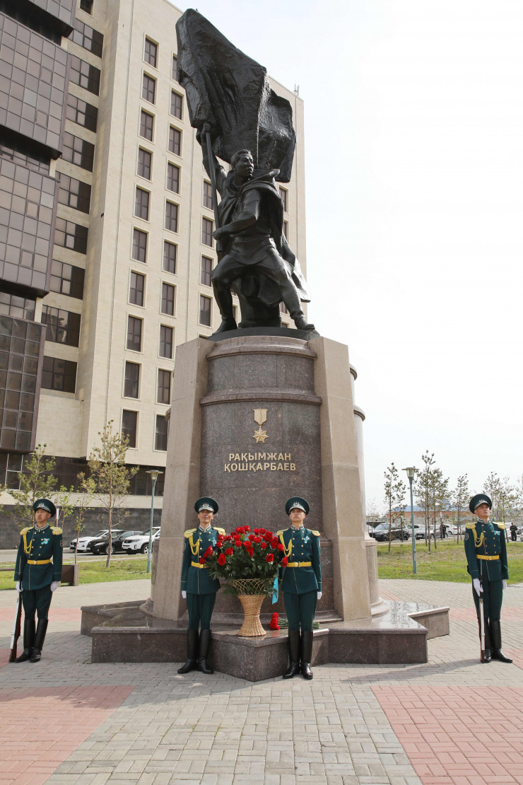Как сообщается на сайте Акорды, руководство Администрации Президента возложило венок к памятнику великому сыну казахского народа "Халық Қаһарманы" Рахымжану Кошкарбаеву, который первым водрузил знамя над Рейхстагом, и почтило минутой молчания память воинов-казахстанцев.
