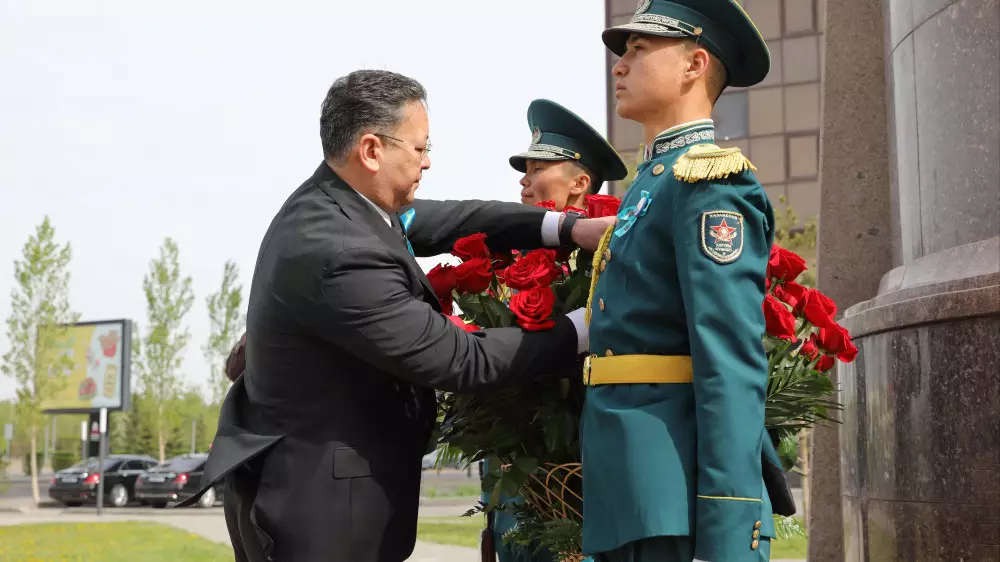 Как сообщается на сайте Акорды, руководство Администрации Президента возложило венок к памятнику великому сыну казахского народа "Халық Қаһарманы" Рахымжану Кошкарбаеву, который первым водрузил знамя над Рейхстагом, и почтило минутой молчания память воинов-казахстанцев.