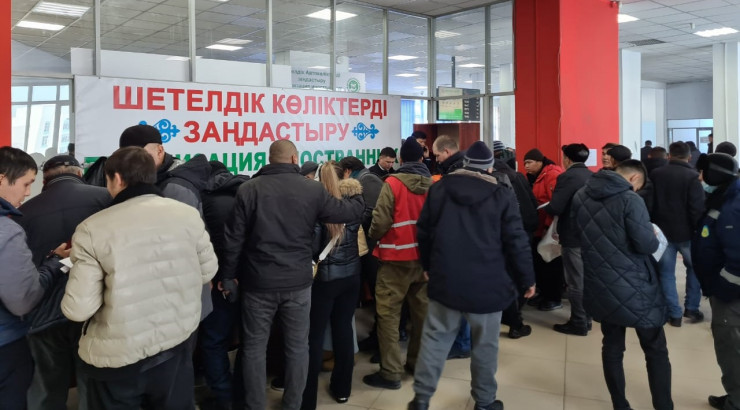 Для легализации иностранных авто руководство учреждения выделило целый блок. Он находится на втором этаже. Здесь владельцы первым делом берут талон на очередь. Как только она подходит, нужно подойти к заранее установленным компьютерам, где через сервис Egov загружается пакет документов, необходимых для получения казахстанских госномеров. Это называется "нулевой этап", когда проходит стадия предварительной проверки документов.