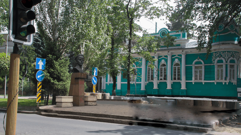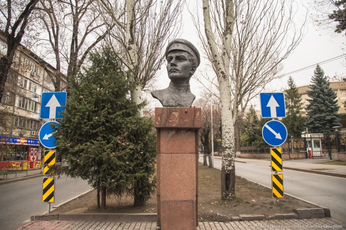Бюст советского писателя и революционера стоял на аллее по улице Курмангазы.