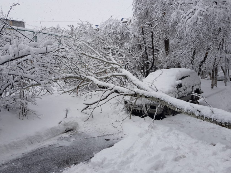 Между тем пользователи социальных сетей делятся фото и видео с последствиями сильного снегопада в Алматы.
