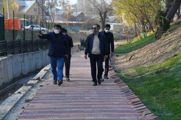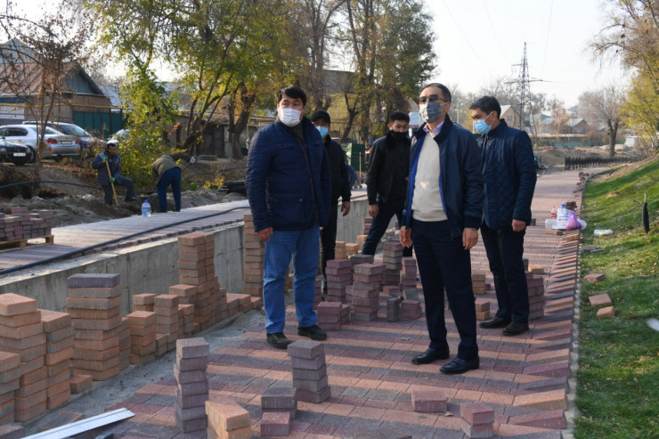Аким Алматы Бакытжан Сагинтаев во время рабочего объезда проверил ход ремонта и благоустройства парков, скверов, дворов и набережных Медеуского района.