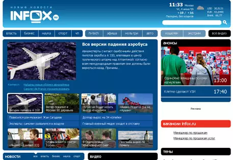 Арбитражный суд Москвы получил иск от информационного сайта Infox.ru, сообщает Lenta.ru. Интернет-ресурс принадлежит ООО "Инфокс-Интерактив", которое будет судиться с телекомпанией НТВ. Иск на сумму в пять миллионов рублей связан с защитой интеллектуальной собственности. Как пояснил главный редактор сайта Александр Писарев, Infox.ru отучит телекомпании транслировать чужой контент без ссылки на первоисточник. Писарев объяснил высокую компенсацию тем, что канал НТВ неоднократно пользовался их информацией, нанеся интернет-ресурсу огромный ущерб. Доказательством по иску будет служить аудиозапись, которая сначала появилась на сайте, а затем в вечернем выпуске программы "Сегодня" телеканала НТВ без ссылки на Infoх.ru. Сайт не осуществлял попыток решить конфликт в обход суда. Это принципиальная позиция истца. По словам представителей Infox.ru, данным судебным процессом они хотят довести до сведения телекомпаний, что у любой информации в интернете есть авторские права. Сайт Infox.ru обвинил НТВ в нарушении авторских прав - Lenta.ru, 04.06.2009 INFOX.ru НТВ