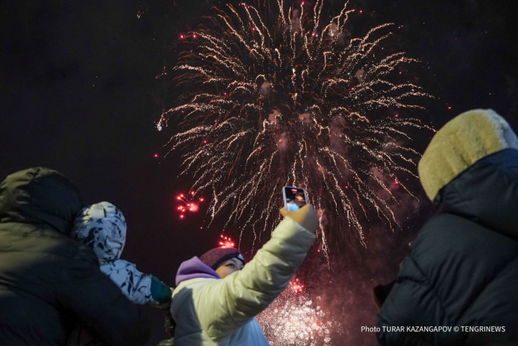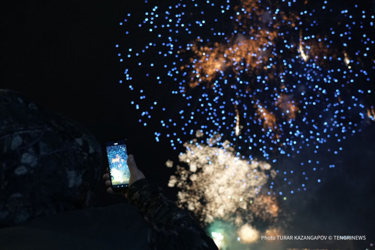 Вместе с другими зрителями за салютом наблюдал фотограф Tengrinews.kz Турар Казангапов.