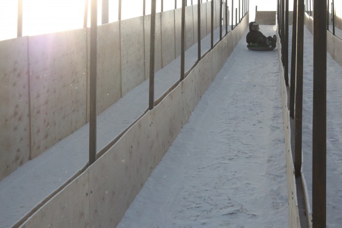 На горке кататься можно только на тюбингах. На ледянках спуск с нее будет запрещен, так как это может представлять опасность для горожан. Сама горка, как заверяет автор проекта, безопасна.