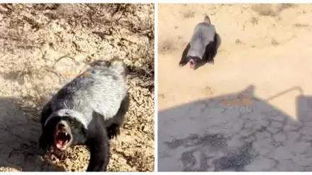 В Мангистау медоед уже попадал в объективы камер в июне 2022 года. Тогда неизвестные на внедорожнике устроили за ним погоню.