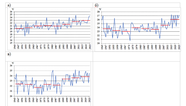 Каждое десятилетие с 1943-го по 2023 год было теплее предыдущего. Особенно заметно повышение температуры в июле. За период с 2004-го по 2013 год средние месячные температуры составляли: в июне - 22,6 градуса, в июле - 24,6, в августе - 23,6. В период с 2014-го по 2023 год эти показатели изменились: в июне - 22,9 градуса выше нуля, в июле - чуть больше 26, в августе - почти 24 градуса.