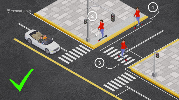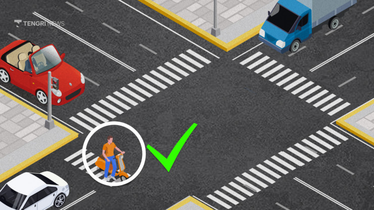 С самокатами такой ситуации возникнуть не должно, так как они должны пересекать дорогу по зебре.