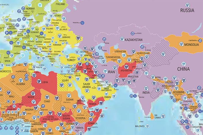 Аналитики компаний International SOS и Control Risks, которые занимаются оценкой глобальных рисков для здоровья и безопасности людей во время путешествий, составили карту мира, иллюстрирующую уровень опасности при посещении различных государств.