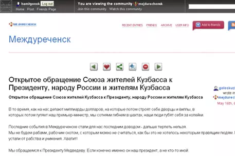 В интернете появилось открытое письмо к Дмитрию Медведеву, гражданам России и жителям Кемеровской области, подписанное Союзом жителей Кузбасса, сообщает "Эхо Москвы". Текст послания размещен в блогах. Авторы послания выдвинули пять ультимативных требований. Они добиваются освобождения всех арестованных в Междуреченске и прекращения их преследования. Кроме того, они требуют повышения зарплаты всем горнякам хотя бы до 45 тысяч рублей (1482 доллара). Авторы письма также хотят добиться прекращения преследования за независимую профсоюзную деятельность и вывода из Междуреченска иногородних сил МВД. Кроме того, они требуют проведения ежемесячных встреч с городской администрацией. Ответа от президента авторы обращения ждут до утра 21 мая. Если реакции не последуют, то они обещают устроить акции протеста у горадминистраций области. "В случае невыполнения наших требований, мы будем вынуждены уже говорить и действовать в области политики, а не социальных требований", - говорится в тексте обращения. Стоит отметить, что ранее Союз жителей Кузбасса нигде не упоминался. Никто из авторов текста не написал под письмом своей фамилии. Представители власти открытое письмо пока не прокомментировали. Напомним, в ночь на 15 мая в Междуреченске прошел массовый митинг, в ходе которого была перекрыта железная дорога и произошли столкновения шахтеров с ОМОНом. Участники протеста требовали от руководства шахты "Распадская" повышения зарплаты и соблюдения техники безопасности.