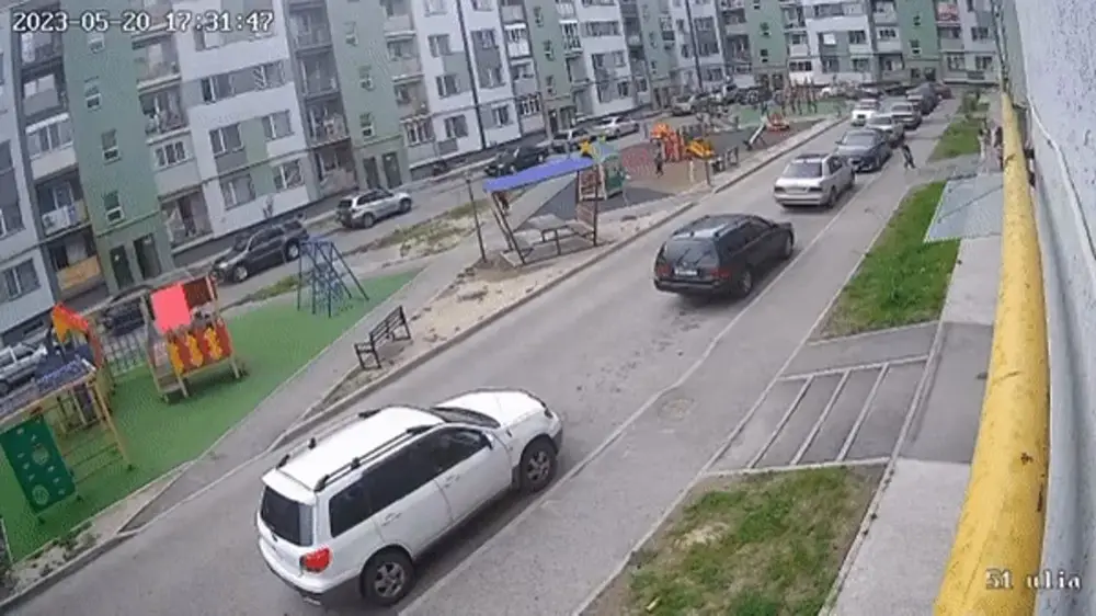 Судя по кадрам, водитель сначала сбил ребенка, который перебегал дорогу, а затем заехал на детскую площадку. К счастью, в этот момент там не было других детей.