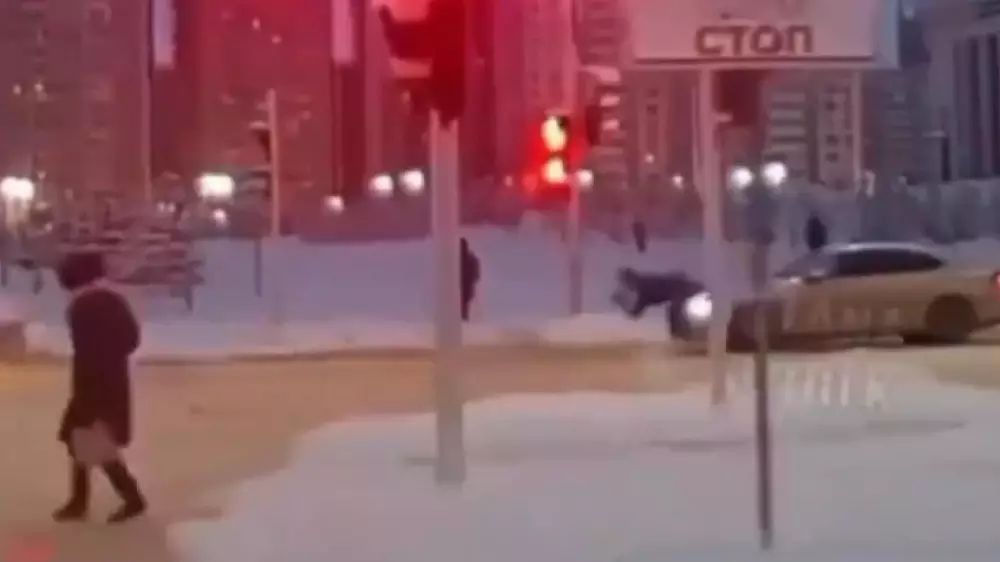 Сбитая водителем легкового автомобиля астанчанка встала и, прихрамывая, побежала и села в автобус, к которому торопилась. Инцидент попал на видео, передает корреспондент Tengrinews.kz.