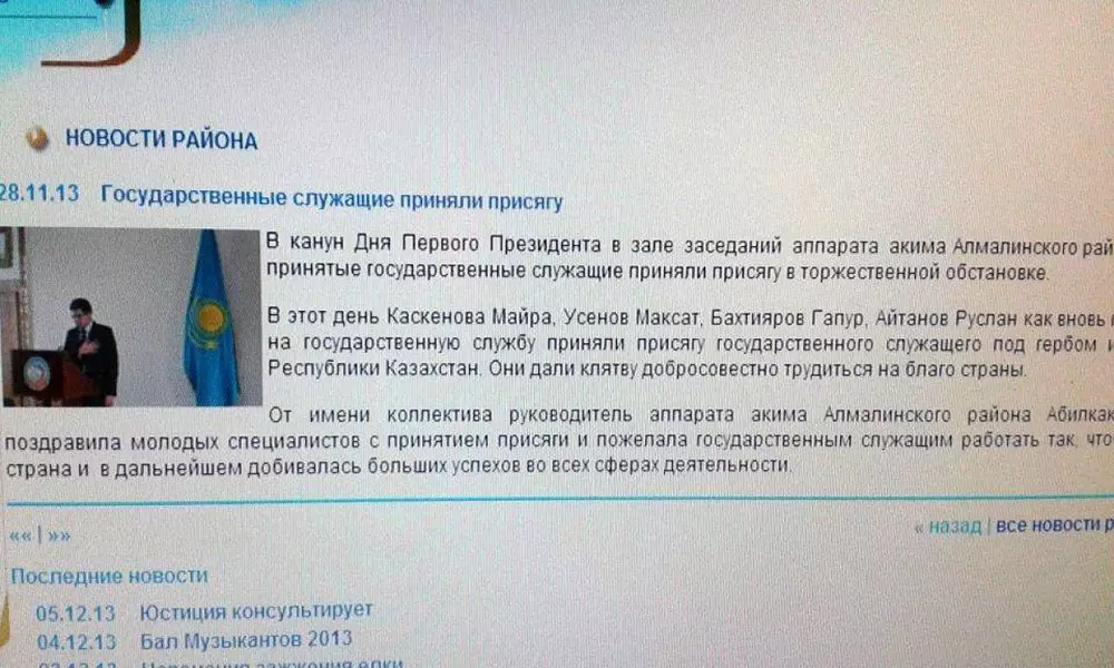 Сбивший 6 человек водитель BMW X6 работал в акимате Информация о принятии присяги госслужащими. На фото Максат Усенов. Скриншот страницы сайта Алмалинского районного акимата.