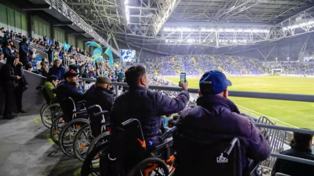 Поболеть за национальную сборную на стадион "Астана-Арена" прибыла группа из 40 человек, передвигающихся на колясках.