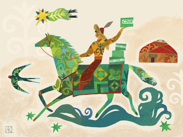 Для реализации идеи о том, что СДЭК — это не просто международная корпорация, а компания, которая учитывает потребности, менталитет и культурные особенности Казахстана, компания запустила проект с казахстанской художницей Айгерим Карибаевой. Она создала визуальные образы, отражающие локальный колорит.
