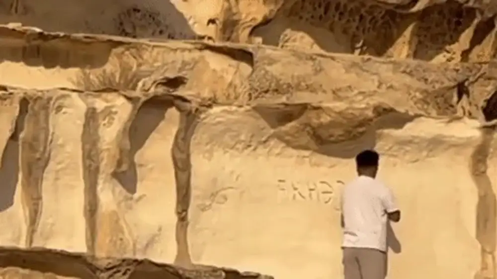 В акимате Актобе официально признали, что человек на видео, выбивавший надпись в каньоне Ыбыкты-Сай в Мангистауской области, является директором Дома культуры, передает корреспондент Tengrinews.kz.