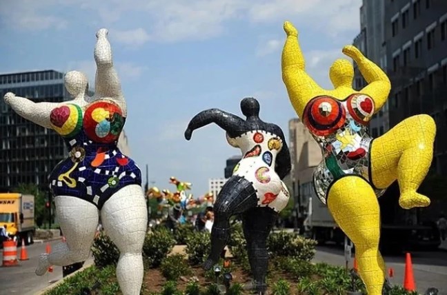 Кейінірек сауда орталығының өкілдері бұл мүсіндердің плагиат екенін мойындады. Расында да Парижде осындай мүсіндер орнатылған. Оның авторы - француз суретшісі, мүсінші Ники де Сен-Фалль.