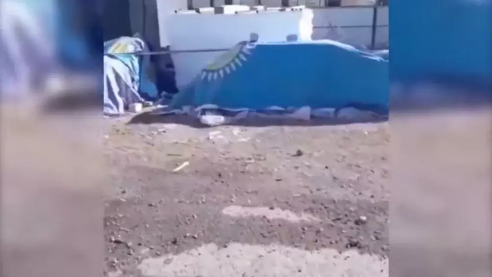 "Матерчатый предмет, которым были покрыты строительные материалы, не является  Государственным Флагом РК, как полагает автор видео, тем самым вводя людей в заблуждение, это часть старого билборда голубого цвета", - сообщил Ербол Ермагамбетов.