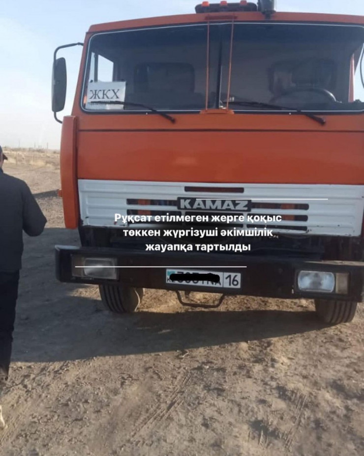 Как сообщили на странице акимата в соцсетях, днем на канал 102 поступило сообщение о том, что в районе 35-й колонии неизвестный водитель автомашины марки КамАЗ выгружает мусор в неположенном месте.