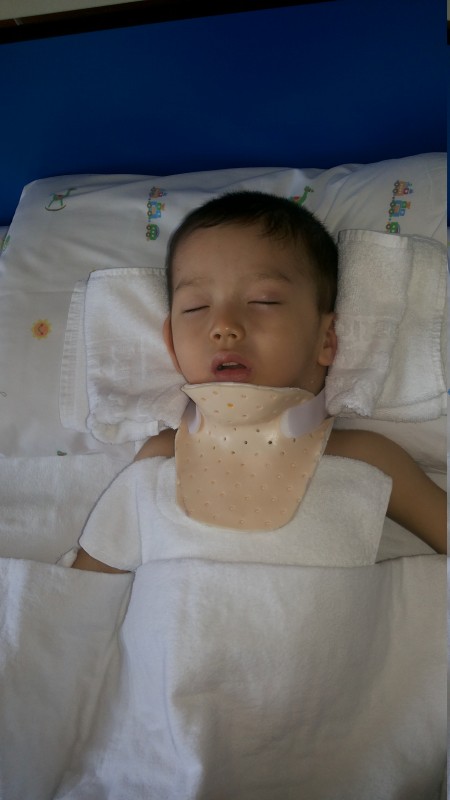 Впервые травму заподозрили врачи в 5 месяцев, так как ребенок самостоятельно не переворачивался, плохо держал голову и постоянно не спал. Еще один важный симптом - у него не усваивался кальций, руки были согнуты во внутрь, ножки вытянуты. При этом гипопаратиреоз, характеризующийся дефицитом кальция в организме, у малыша лабораторно не подтверждался. Подтвердить все догадки удалось лишь спустя восемь месяцев после рождения малыша. Родители продали квартиру, на собранные деньги в 2011 году они повезли маленького Алемжана в Израиль, где ребенку наконец-то сделали МРТ шейного отдела и поставили диагноз: "Родовая краниоспинальная травма шейного отдела. Но оперировать мальчика израильские медики не взялись из-за слишком маленького возраста.