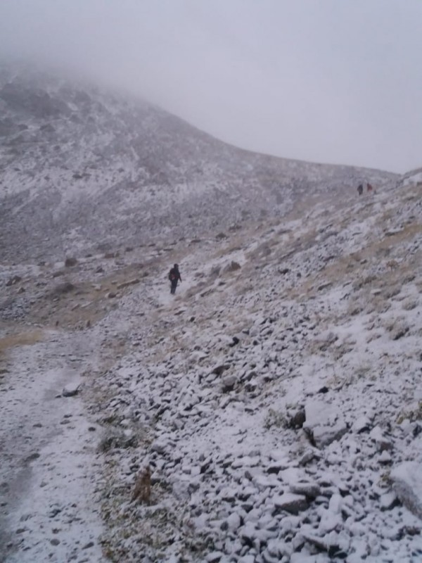 По прибытии в район Большого алматинского озера спасатели пешим ходом выдвинулись на поисково-спасательные работы, шел мокрый снег.