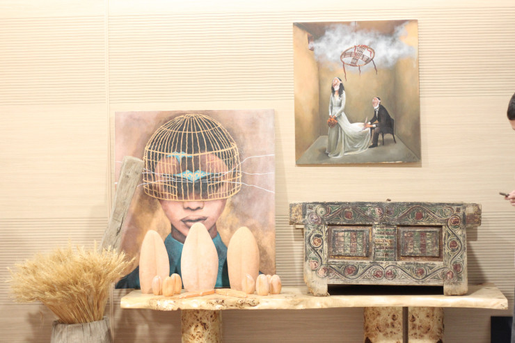 Жанғазы Сейдахмет, известный как Гозин, также представил свои работы на выставке. Его творчество связано с использованием национальных орнаментов, которые он видит как важное наследие, требующее возрождения и новой жизни. А его ручные панно пользуются особой популярностью у иностранных покупателей.