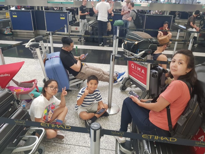 В аэропорту семью быстро, пока ничего не заблокировали, повели во второй терминал, откуда они на поезде добирались до первого терминала. "Вылетели, сели в Абу-Даби, тут посольство предоставило нам отель с питанием. В общем, наше посольство сработало отлично", - отметил казахстанец.