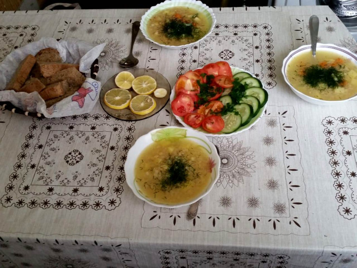Семья Тлеубаевых совмещает обед и ужин. После 16.00 "едят" только воду, максимум с добавлением лимонного сока. В качестве перекуса могут быть фрукты. Но это касается только взрослых членов семьи. Веганы очень бережно относятся к воде - не льют попусту, во время мытья посуды включают тонкой струйкой. Динара Тлеубаева уверена, что экономить можно при любом достатке.