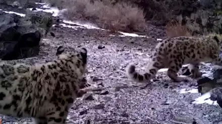 В Министерстве экологии, геологии и природных ресурсов сообщили, что фотоловушка нацпарка "Алтын Эмель" зафиксировала трех снежных барсов, передает корреспондент Tengrinews.kz. Это оказалась семья из самки и двух ее детенышей.