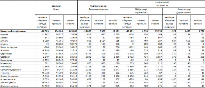 По данным комитета по статистике МНЭ РК, в страны СНГ выбыло 15 399 казахстанцев, в другие страны - 1 772 казахстанца.