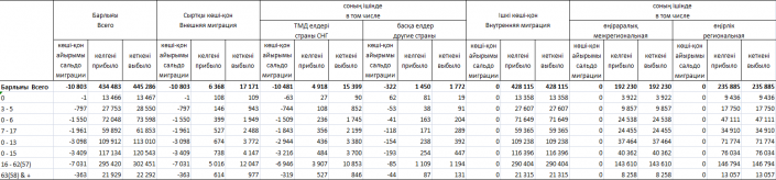 Уезжали как из городов, так и из сельской местности. Городского населения выбыло: в страны СНГ - 13 226 человек, в другие страны - 1 335 человек. Из сельской местности в СНГ переехали 2 173 человека, в другие страны - 437 сельчан.