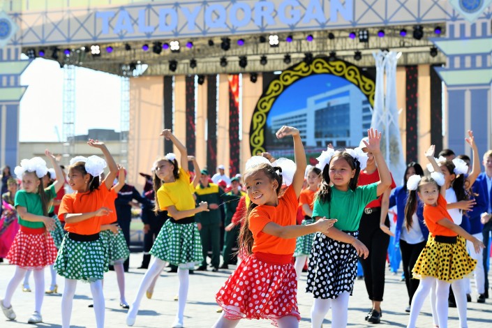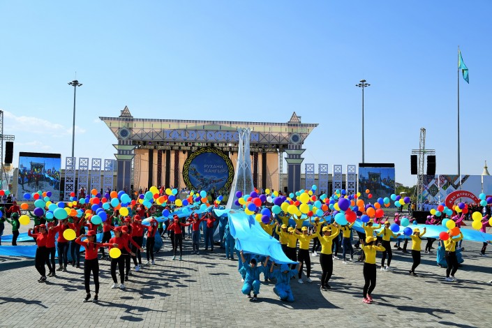 Музыкально-хореографический пролог "Арайлы мекен - Талдықорған!", в котором приняли участие 500 человек из творческих коллективов города, открыл основную концертную программу.