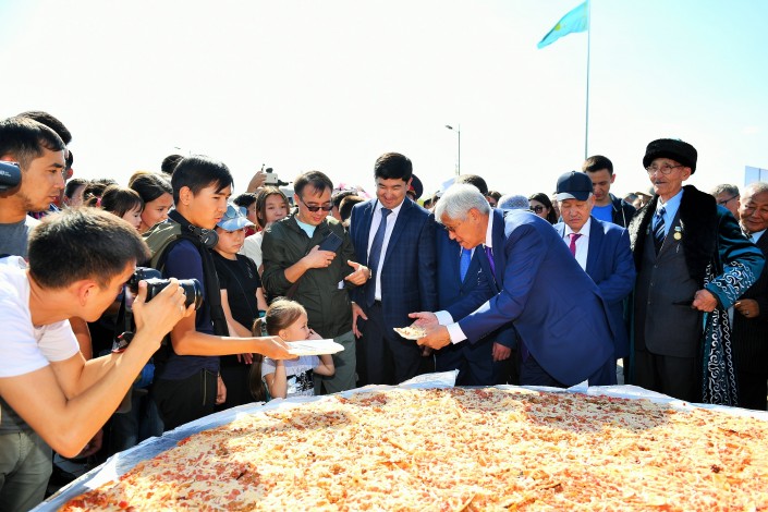 Приготовленные специально к празднику 6-метровый торт с изображением главных символов Талдыкоргана и 6-метровая пицца никого не оставили равнодушным. Праздничное угощение дополнила выставка яблок, в ходе которой все желающие могли попробовать спелые осенние плоды.