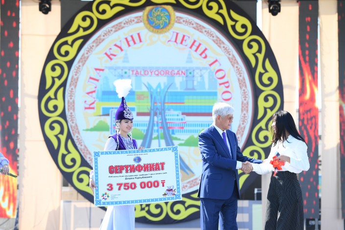 В честь праздника новыми именами заслуженных жителей пополнился и список Почетных граждан Талдыкоргана. Среди них депутат Мажилиса Парламента РК Марат Бопазов, директор ТОО "Алматинские краски" Римма Салыкова и ветеран Семиречинского филиала предприятия "Югсантехмонтаж" Виктор Еремкин.