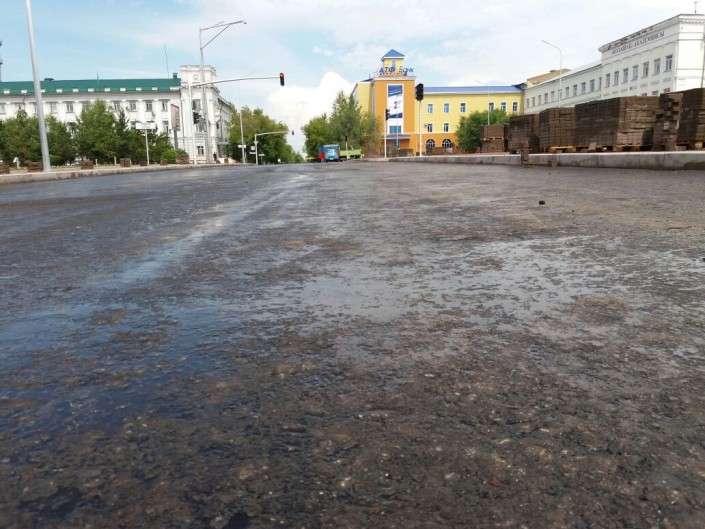 Вскоре к площади подошел сотрудник подрядной организации, которая занимается реконструкцией этой улицы. Юрий Мальчушкин представился заместителем директора ТОО "Агродор". Он пояснил, что работы на данном участке производятся согласно техническим нормам. А то, что асфальт немного прилипает к обуви, естественный процесс.