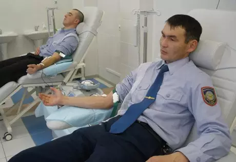 По словам директора североказахстанского "Центра крови" Сартая Коспанова, полицейским здесь всегда рады, поскольку люди в форме регулярно проходят медицинские осмотры. "Среди них нет людей с серьезными заболеваниями", - резюмировал собеседник.